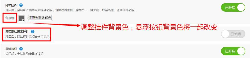 18. 悬浮按钮背景色和网站挂件保持一致,网站挂件可以设置默认展开或默认隐藏