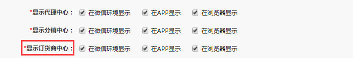 订货商中心可以设置是否在微信、APP、浏览器中显示