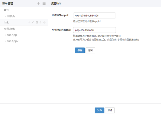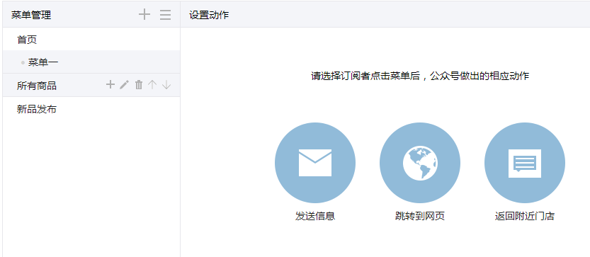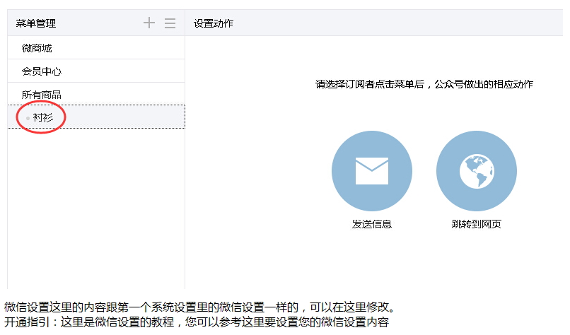 二级菜单,可以设置订阅者点击菜单后,发送信息或跳转到网页(设置链接到的页面地址)