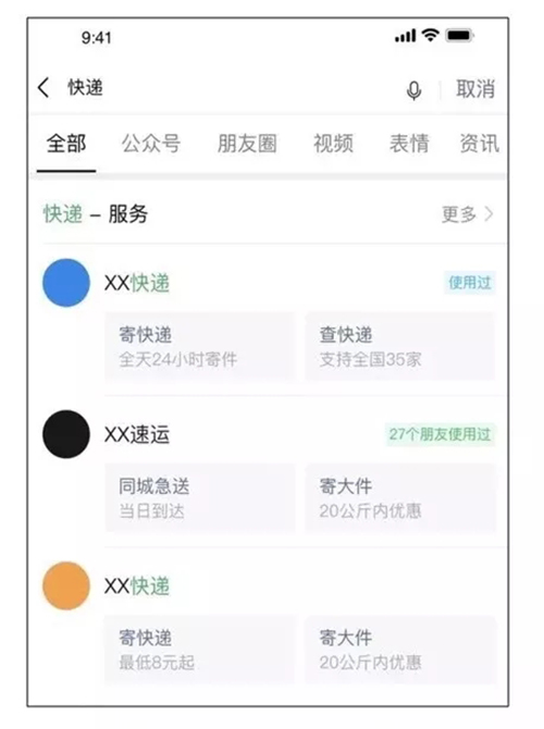 而后,“搜一搜”正式开放服务搜索接入,可直达对应小程序。即凡满足条件的商家在公众号后台配置“服务搜索”后,相关小程序服务就有机会在搜索中展示。从网上流传出的微信产品内测图来看,搜一搜结果页会将小程序服务置顶、细分服务直接露出。