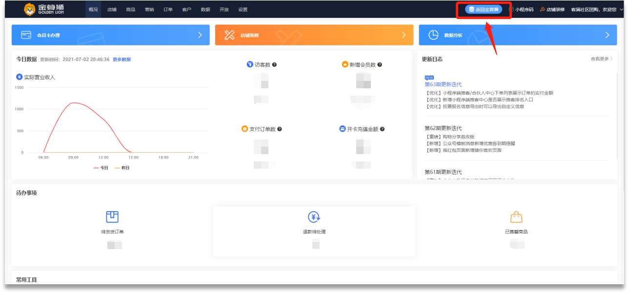 金算狮商城系统与金算狮智能管理系统数据互通,实现系统间一键切换、免密登录,操作更加方便快捷,如下图所示。